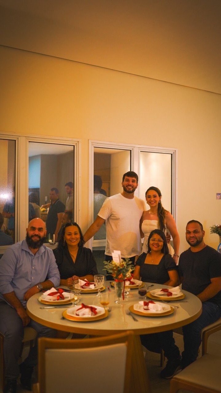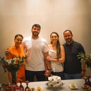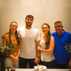 Para celebrar esse novo tempo, preparamos um jantar muito especial para entregar os presentes aos nossos padrinhos — pessoas que fizeram e fazem parte da nossa caminhada.