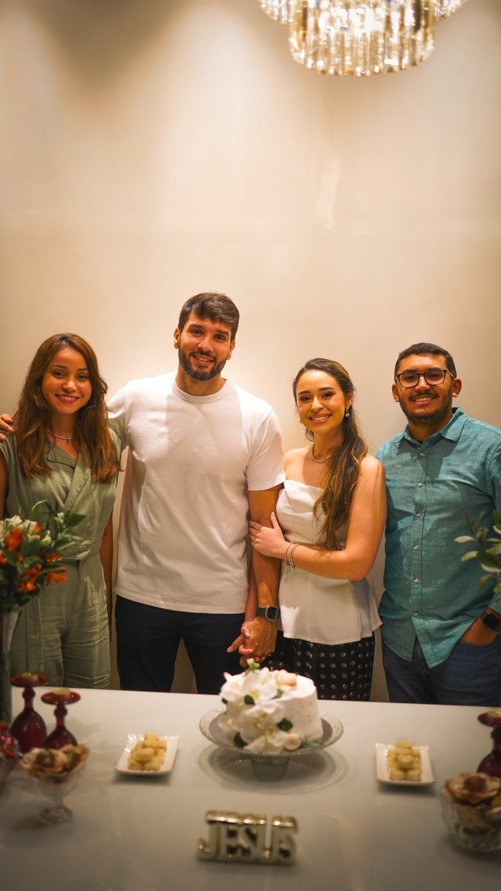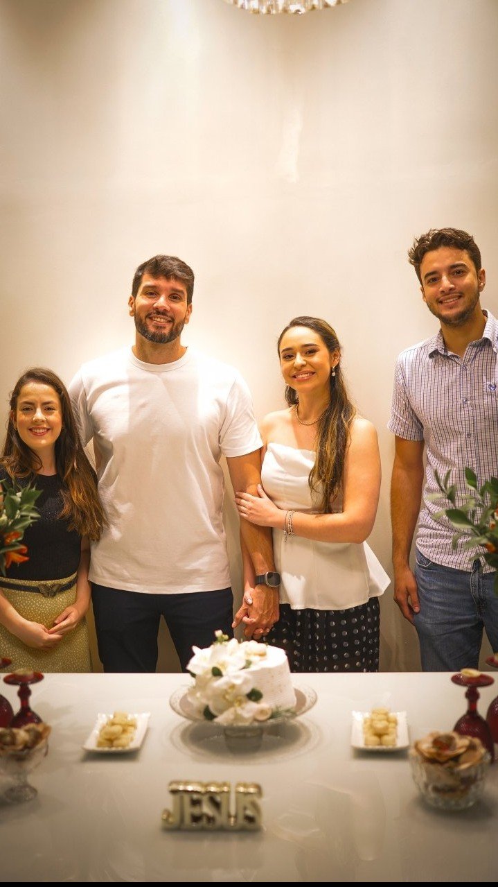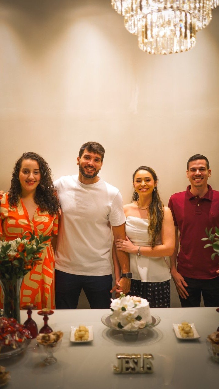 Enquanto ele falava, senti que aquele momento não seria apenas mais um. O que começou com uma mensagem inspiradora se transformou na mais linda história que Deus poderia escrever. Desde aquele dia, entre risadas, orações e muitos sonhos, o que era encontro virou amor, e o que era admiração virou certeza. Hoje estamos aqui, prontos para viver o próximo capítulo daquilo que começou com um simples olhar — e o mover perfeito de Deus.