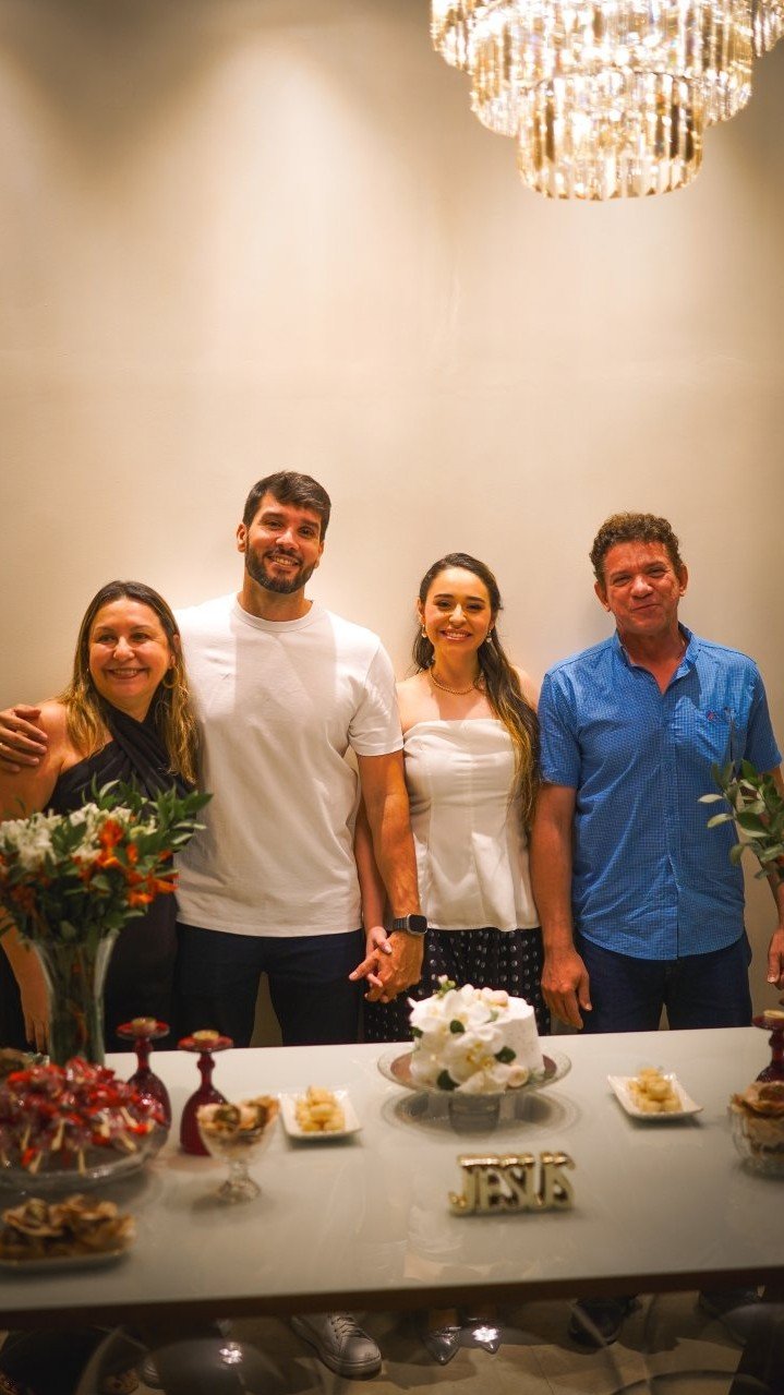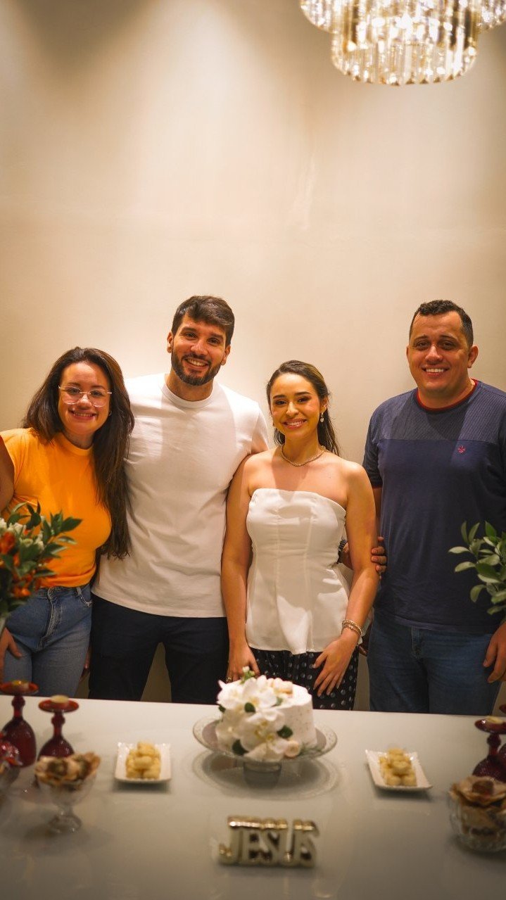 Cada palavra, cada gesto e cada oração de vocês nos trouxeram até este momento. Obrigada por nos ensinarem o valor da família, por acreditarem nos nossos sonhos e por estarem ao nosso lado em cada etapa da caminhada. Este casamento é também fruto do amor e dos princípios que aprendemos com vocês. Que o nosso lar seja um reflexo de tudo o que vimos e vivemos ao lado de vocês — cheio de carinho, fé e união. 🤍